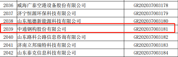喜報(bào)!中通鋼構(gòu)股份有限公司榮獲 “國家高新技術(shù)企業(yè)”稱號